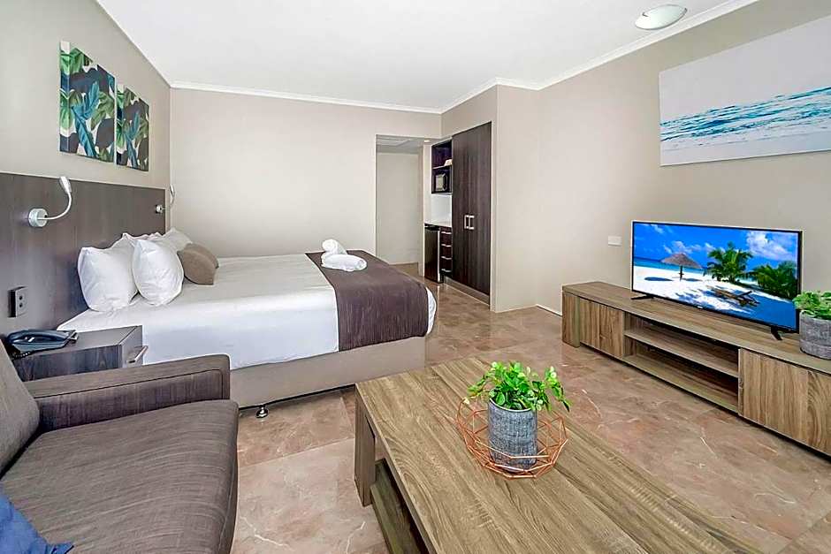Welcome to our spacious Standard Queen Room, perfect for 2 adults. Enjoy the comfort of the Queen size bed, air conditioning, and a private terrace in this elegant studio space.